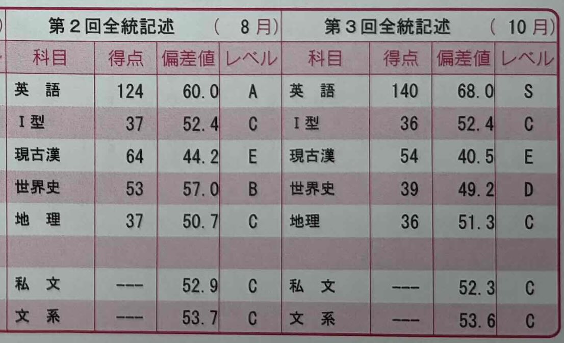 この後出てくる模試の結果を見れば、決して褒められた成績では無かったことがわかると思います。