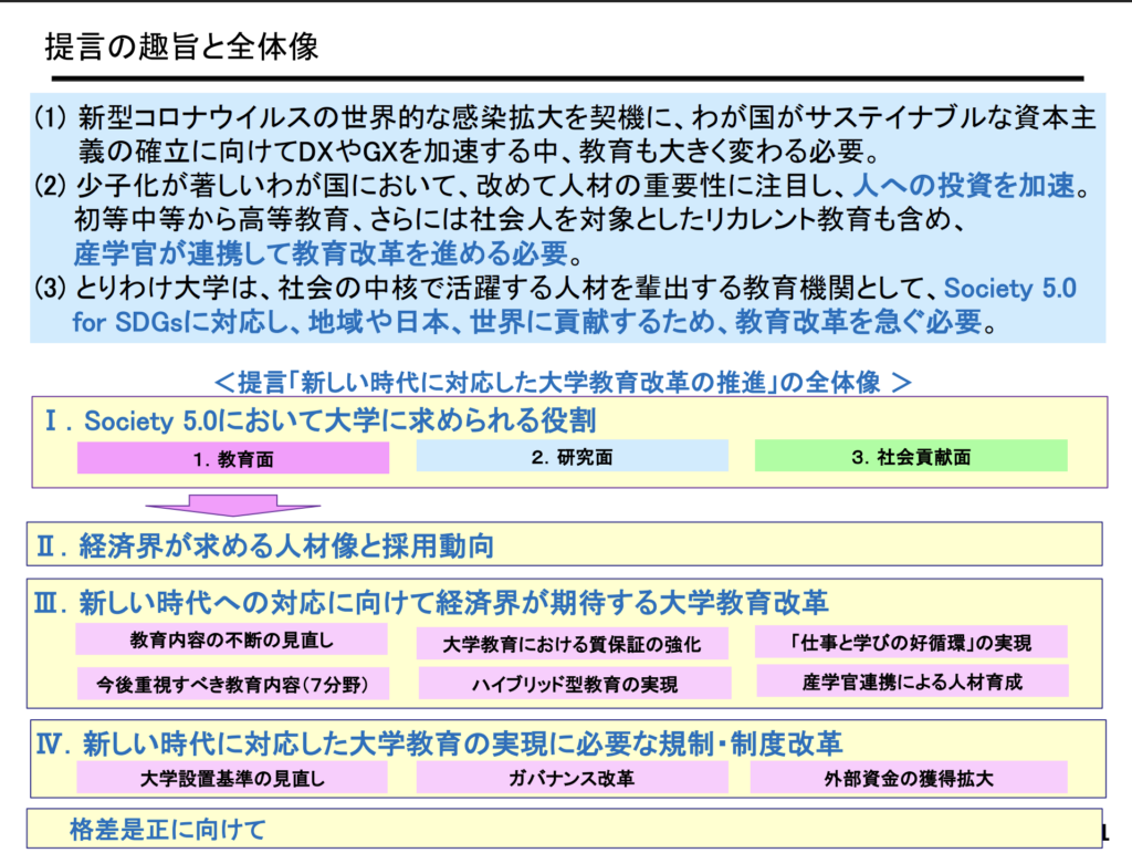 ②経団連実用重視。社会で役立つ能力社会的価値創造のための資源大学と社会の乖離社会問題を解決する力